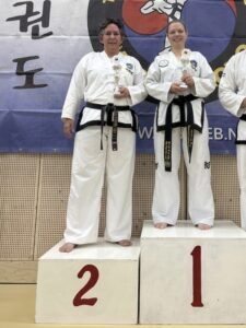 Na ruim 20 jaar zijn Boosabum Anita van Bree en Boosabum Ilona Maandag, -beide 2e Dan zwarte band- nog eens de mat opgestapt en lieten zien dat ook instructeurs zich nog onder de druk van een competitie weten te presteren. Practice what they preach. Respect voor onze instructrices.